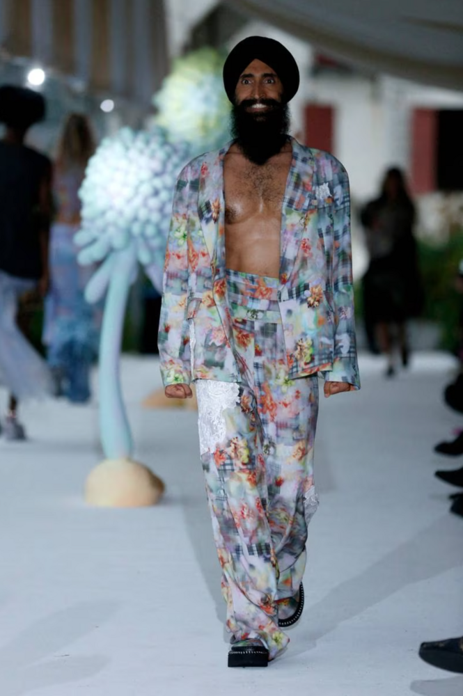 Taymour, insanlık ve makine arasındaki varoluşsal kopukluğu vurgulamak için modellerine podyumda zorla gülümsemeleri ve sıkılı yumruklarla yürümeleri talimatını vermiş. Bu çılgın sırıtışların ve gerçeküstü kıyafetlerin etkisiyle, tuhaf ama güzel bir defile ortaya çıkmış.