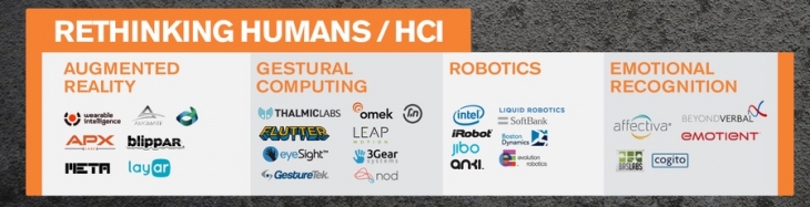 İnsan ile bilgisayar etkileşiminden doğan alanda ise artırılmış gerçeklik, vücut hareketiyle bilgisayar kontrolü, robotlar ve duygusal tanıma öne çıkıyor. Artırılmış gerçeklik alanında her geçen gün yeni bir gelişme yaşanıyor. Blippar geliştirdiği bu teknolojiyi diğer sektörlerdeki markaların kullanabileceği hale getiriyor.
