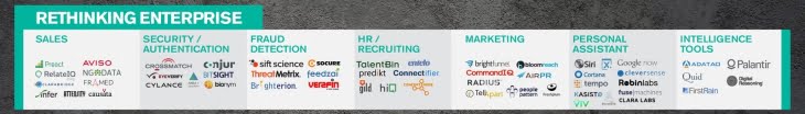 Yale Üniveristesi mezunu ve Bloomberg Beta‘da risk sermayedarı olan Shivon Zilis; makinelerin zekası veya bir diğer ismiyle yapay zeka üzerine bir süredir devam eden araştırmasını yayınladı. Şirketlerin ve markaların yapay zekayı kullanma tekniklerini ve fırsatlarını değerlendiriliyor. Makinelerin zekasını kullanan toplam 2.529 şirket ile karşılaşan Zilis, 5 ana kategori seçip alt kollara bölmüş. Her ne kadar Google gibi şirketleri sınıflandırmak zor olsa da bir sınıflandırma yapmak zorunda olduğunu söylüyor.