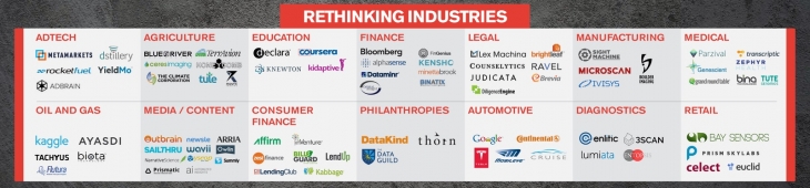 Bilgisayarın anlama ve kendini geliştirme yeteneğini kullanan sektörler sadece girişimlerle sınırlı değil. Tarım, eğitim, finans, sağlık, petrol, basın ve otomotiv gibi birbirinden bağımsız endüstrilerin ortak paydasında yapay zekayı görebiliyoruz.