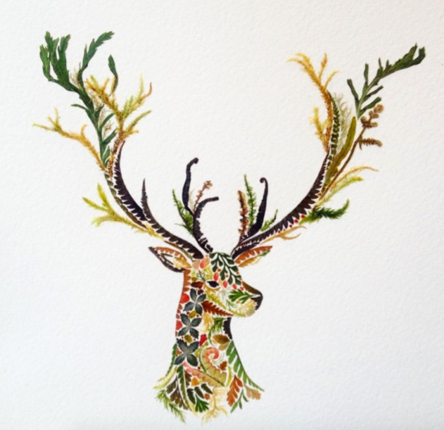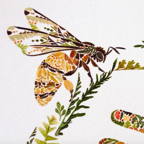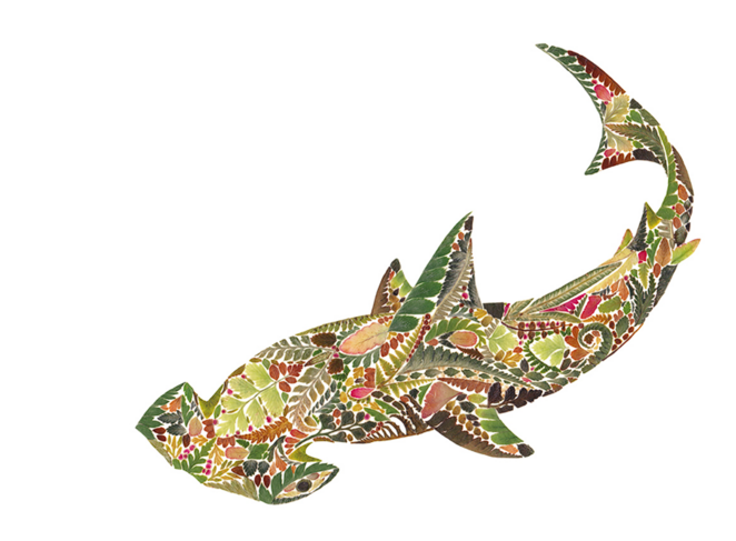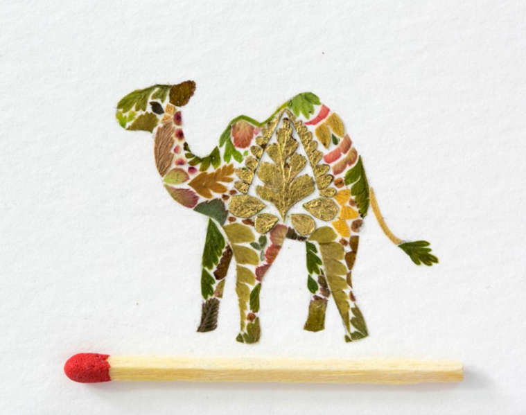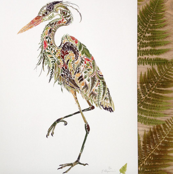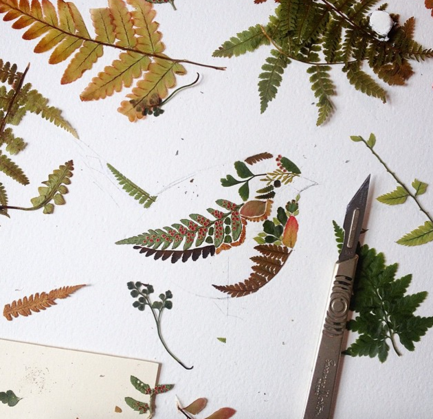 İngiliz sanatçı Helen Ahpornsiri; hayvan figürlerinden oluşan serisinde boya yerine eğrelti otu, yosun, yaprak gibi doğal materyaller kullanıyor. Doğadan topladığı bu malzemeleri önce presleyen Ahpornsiri, malzemelerin renklerine göre hayvan silüetlerini detaylandırıyor.