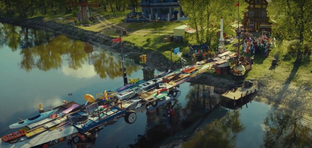 Filmde LEGO’nun minifügür serisindeki karakterlerden oyun setlerine kadar markanın kütüphanesindeki birçok ürünü görmek mümkün. Medieval Market Village, Downtown Diner, Burger Bar Fire Rescue, Detective’s Office gibi setlerle birlikte kasaba oluşturuluyor. Ayrıca, Volkswagen T1 Campervan ve Ford Mustang gibi LEGO aksesuarlarını da görme imkanı bulunuyor. Bununla birlike gelecek dönemlerde sunulması beklenen yeni setlere ilişkin ufak referanslar da arka planda kendini gösteriyor.