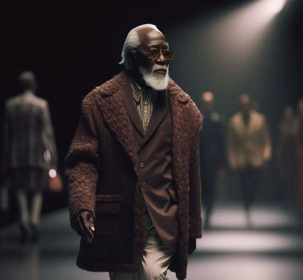 Yapay zeka ürünü görüntülerde, podyumda avangart kreasyonlarla yürüyen yaşlı insanlar var. Karakterler, baştan ayağa lüks malzemelere sahip baskıları ve desenleri bir araya getiren kıyafetler giyiyor. Bu insanların hepsi hayali. Serinin adı “Fashion Show for Elders” (Yaşlılar İçin Moda Şovu).