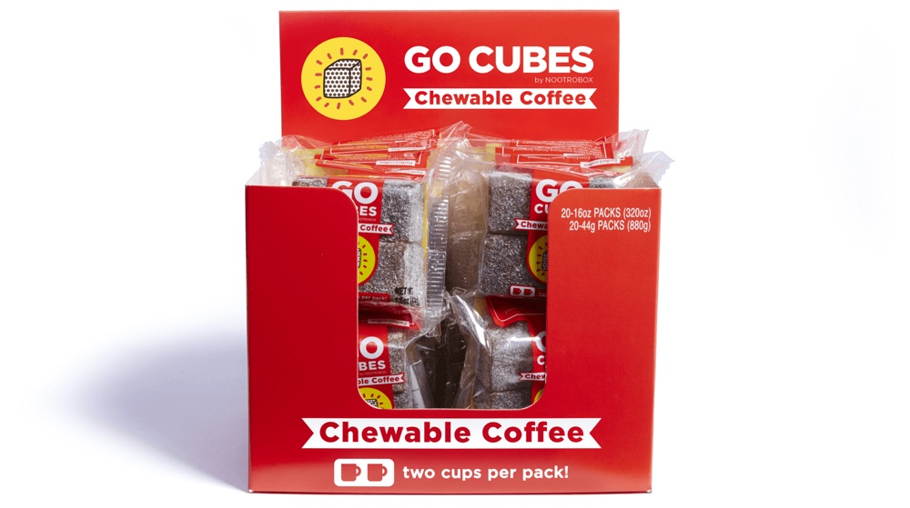 Günlük hayatı yüksek tempoda ve sürekli bir şeye yetişme hali içinde yaşayan bireyler için kapsül dopingler geliştiren Nootrobox, küp şeklinde yenilebilir kahveler geliştirdi. Sıcak kahveyi ağzımızı yakmadan içmeye çalışarak uyanmak yerine bir lokma kahveyi sakız gibi çiğneyerek doping ihtiyacımızı karşılayabiliyoruz.