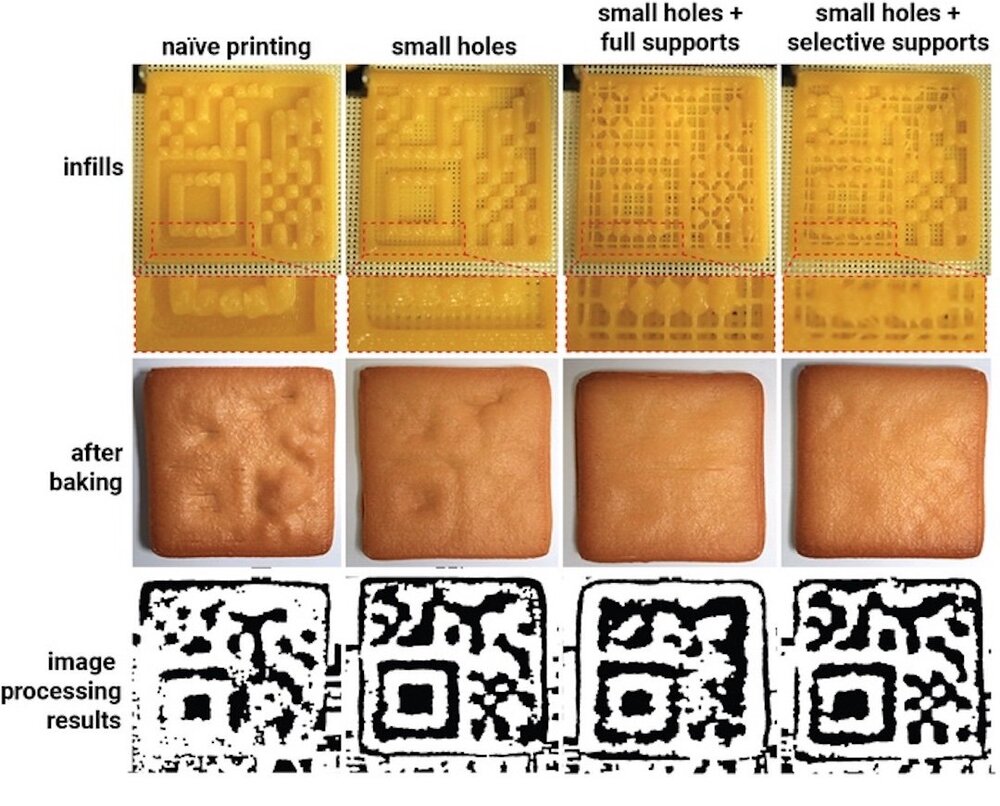 Araştırma ekibinden Yamato Miyatake, “Artık birçok gıda 3B yazıcılar kullanılarak üretilebiliyor. Çerezler gibi yenilebilir nesnelerin iç kısımlarının boş alan desenleri içerecek şekilde yazdırılabileceğini fark ettik. Böylece çerezin arkasından ışık tuttuğunuzda QR kodu görünür hale gelir ve bir cep telefonu kullanılarak okunabilir.” diyor.