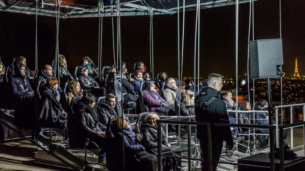 Azilis tarafından hazırlanan ön izleme etkinliğine gazeteciler, kanalın Fransa ortaklarından Canal+ ve sosyal medyadaki yarışmanın kazananları katıldı. Platform bir vinç vasıtası ile yukarı çıkarıldı. Demir halatlarla güvenliği sağlandı. Koltuklar ve projeksiyon platforma sabitlendi. Paris manzarası eşliğinde gezegenimizin içinde ve ötesinde yaşanan bu yolculuk izlendi. Müşteri deneyimi alanında ödüller de kazanan belgesel gösterimi için toplamda 4 oturum gerçekleştirildi. 120 kişi bu deneyimi yaşama fırsatı yakaladı.