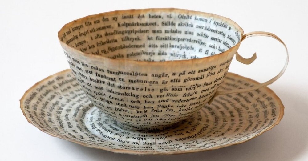 Sanatçı Cecilia Levy, eski kitaplardan cümleleri tek tek kesip çıkarıyor. Kestiği metinleri; ayakkabı, püsküllü çizmeler ve klasik çay takımları gibi sıradan eşyalara dönüştürüyor. Bu heykeller, tek bir sayfa kağıt kadar ince ve kırılgan görünüyor. Metin bloklarını bu sıradan biçimlere dönüştürürken onları derinlik katan yeni desenler ve bağlamlar halinde örüyor.