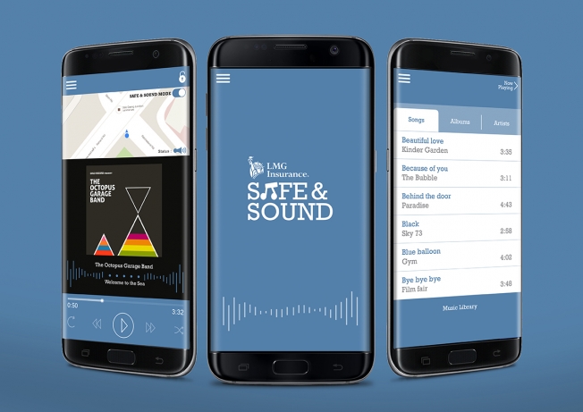 Tayland merkezli sigorta şirketi LMG Insurance, araçların müzik dinlemeye dalmış insanlara zarar vermemesi, insanların da müzik dinleme zevkinden geri kalmaması için BBDO Bangkok ile “Safe & Sound” müzik uygulamasını hazırladı. Safe & Sound, yayalar yola ya da demir yoluna yaklaştığında kulaklıkların ses düzeyini otomatik olarak düşürüyor.