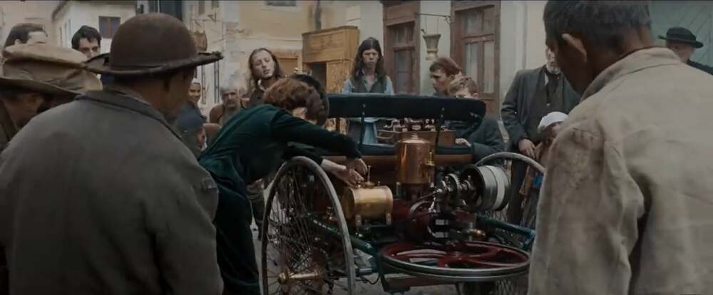 Film Bertha ve çocuklarının yakıtları bittikleri için Wiesloch köyünde kalmasıyla başlıyor. Köylüler, dumanlar çıkaran bir aracın içinde seyahat eden kadını cadı olmakla itham ediyor. Zira köylüler, dünyanın geri kalanı gibi, atlar dışında başka bir ulaşım aracı ile tanışmıyorlar. Köyün ortasında otomobilin benzini bitip dumanlar çıkmaya başlayınca da Bertha Benz eczaneye yönelip, yakıt olarak kullanabileceği malzemeyi arıyor. Şehirdeki korku dolu bakışların ardında ona yardım eden küçük kız sayesinde eczacıyı buluyor. Eczacı istediği ligroinin çözücü özelliğinden ötürü elbisesi için kullanacağını düşünüyor ancak Bertha Benz bu doğal yanıcı mineral yağını otomobilin yakıtı için alıyor.