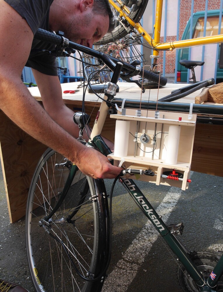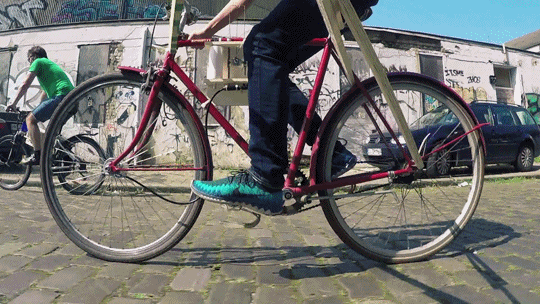 Bisiklet kültürünün adeta gözbebeği olan Amsterdam’dan Berlin’e taşınan Helsinkili sanatçı Kati Hyyppä, Berlin’in bisiklet kullanmak için o kadar da uygun bir şehir olmadığını görmüş. Arnavut kaldırımları ve asfalttaki çatlaklar gibi sorunlarla sürekli olarak karşılaşmak da onu Bisiklet Sismografı isimli projesini yaratmaya itmiş.