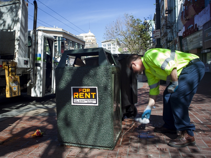 Neyse. İşte ben çabuk gaza geliyorum. Asabiyetim sanatıma engel oluyor. Fotoğrafçı Scot Hampton ile aramızdaki temel fark da bu. Hampton, San Fransisco’daki yüksek kiralara dikkat çekmek amacıyla; sokaktaki çöp kutularına, kanalizasyon kapaklarına filan “for rent” yazısı yapıştırıp fotoğraflamış. Bununla da yetinmeyip Craigslist’te bunlara uygun ilanlar yazmış. Çok sevdim. Çok ince görmüş ama gözünü para hırsı bürümüş ev sahipleri ve emlakçılar bunu anlar mı, emin değilim (Şu an yine gaza geliyorum). İyi, sevimli ev sahiplerini tenzih ediyorum tabii ki.