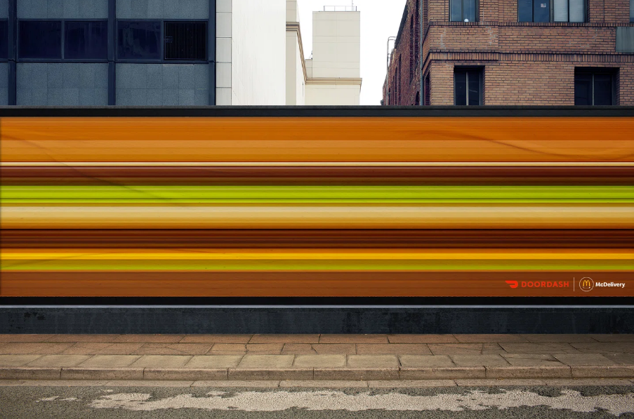 Kampanya kapsamında hazırlanan açık hava reklam panolarında metin olarak en altta yalnızca DoorDash ve McDonald’s logoları yer alıyor. Ajans ayrıca reklam panolarına ilk bakışta anlam veremeyenlerin logolar aracılığıyla durup düşünmelerini sağlayarak renk çizgilerinin aslında bir Big Mac veya Egg McMuffin’in bileşenleri olduğunu fark ettikleri bir etkileşim anı yaratmayı amaçladı. Faster Food kampanyası Toronto’da bulunan basılı ve dijital OOH platformlarında Mart ayı boyunca yayınlanmaya devam edecek.