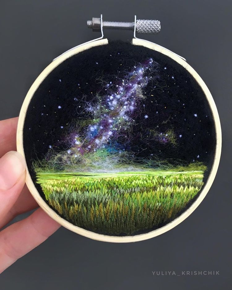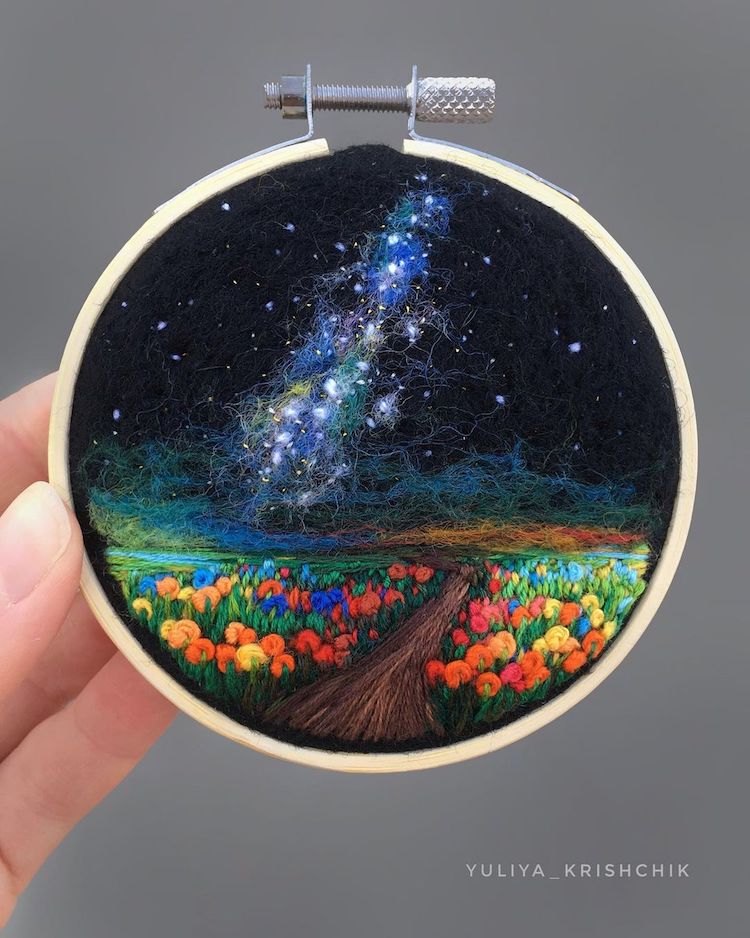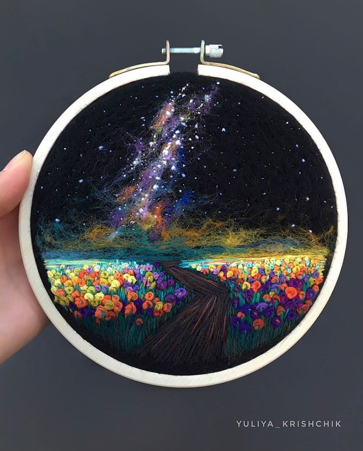 Çizgi film, animasyon, uzaylı, polaroid, CMYK kataloğu, tipografi, mimari, manzara ve daha pek çok tema çağdaş nakış sanatçılarının konusu olabiliyor. Her bir sanatçı kendi seçtiği konu, malzeme (örneğin bazıları elle, bazıları makineyle uygulama yapıyor), renk paleti ve hedef (animasyon veya grafik tasarım amaçlı) doğrultusunda kendisini diğerlerinden farklılaştırabiliyor. Belaruslu sanatçı Yuliya Krishchik de uzayı ve çiçekleri yan yana getirdiği kendine has manzaralarıyla öne çıkıyor.