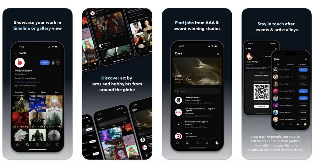 Hafta sonu, Instagram kullanıcıları yoğun bir şekilde yeni Cara profillerinin bağlantılarını Instagram hesaplarında paylaşmaya başladı. Böylece takipçilerini ve sanatçı arkadaşlarını Cara’ya davet ettiler. Platformun Apple’ın ABD App Store’unda İlk 5’e girmesiyle Cara’nın kullanıcı sayısı birkaç binden 300.000’in üzerine çıktı. Bazı büyüme sorunları da yaşandı. Ekip, talebi karşılayabilmek için sunucuları yedi kez yükseltmek zorunda kaldı ve şu anda ekip büyümeyi sürdürülebilir bir şekilde nasıl yöneteceğini belirliyor. Instagram ve Twitter’ın birleşimi gibi tarif edebileceğim arayüz girdiğiniz anda tanıdık geliyor. Hem dijital hem de analog karakter geliştirme, animasyon, illüstrasyon ve daha fazla alanda çalışan sanatçılar için yeni bir toplanma alanına dönüşmüş gibi duruyor.