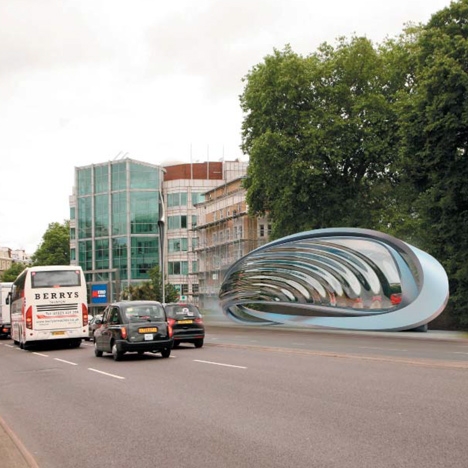 Açık hava reklam ajansı JCDecaux ile anlaşmaları üzerine Hadid, Londra’nın en işlek yollarından biri olan West Cromwell için “kıvrımlı ve akıcı” bir reklam panosu tasarladı. Tek kabuklu (monokok) yapısıyla tasarım geleneksel dikdörtgen reklam panolarına meydan okuyor.