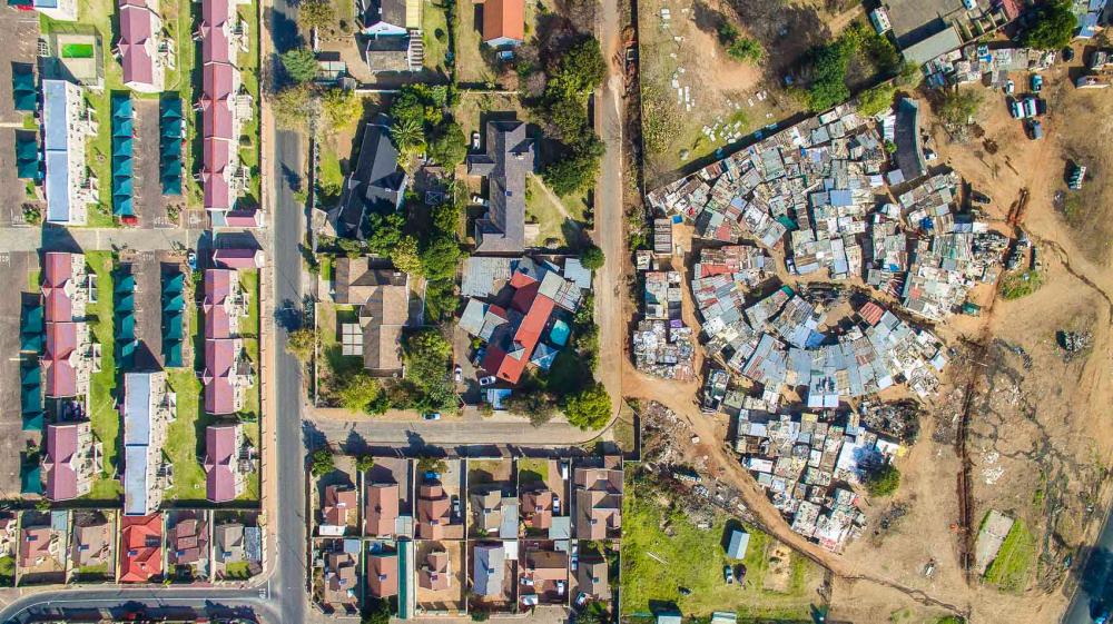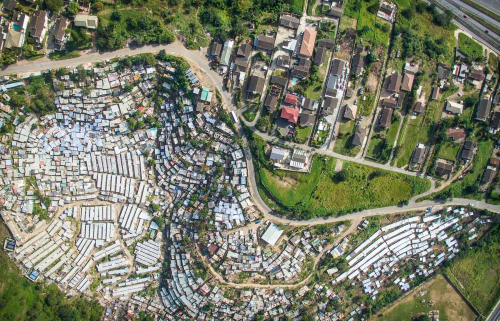 Güney Afrikalı fotoğrafçı Johnny Miller, yaşadığı şehirde olan Cape Town’da 200 metre arayla gözlemlenebilen bu durumu kuş bakışı fotoğraflarla belgelemiş. Unequal Scenes isimli projesinde Güney Afrika’nın başkentindeki bir caddeyle, otobanla, duvarla ayrılan yaşamları görüyoruz. Öyle ki, fotoğraflardaki renk tonları bile yaşam standardını ortaya koymaya yetiyor.