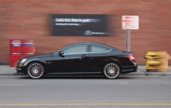Mercedes-Benz C Coupé lansmanı için Toronto’da düzenlenen çevrel araç sergilemesinde, park halindeki otomobilin etrafına, "motion-blur" efektiyle süslenmiş birden fazla sokak