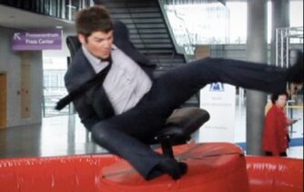 Alman kariyer degisi WirtschaftsWoche‘nin “Stay on top” sloganını beyinlere kazımak için yaptığı, ceo koltuklu rodeo etkinliği. Büyük firmalarda her sene