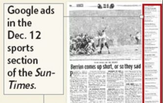 Chicago sun-times gazatesinde test sürüşlerine başlayan Google Publication Ads, kısaca Google Adwords olayını gazateye taşımış. http://www.netzkobold.com/index.php?/archives/118-google-adwords-goes-real-world.html