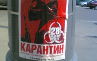 Gerilla olarak nitelendirmek doğru mu bilemem ama Moskova’da birkaç yerde bu ilanları gördüm, çok tarz olmuş 🙂 DİKKAT! KARANTİNA! yazıyor.