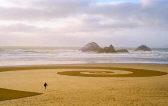 Yaptığı çalışmaların hava şartları ve dalgalar tarafından silinmesine izin veren, geçici tasarımlar yapan Jim Denevan