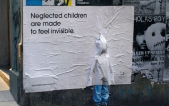“Neglected children are made to feel invisible” “İhmal ettiğimiz çocuklarımız görünmezmiş gibi hissederler” diye çevirebileceğimiz bir sloganla ve bir adet